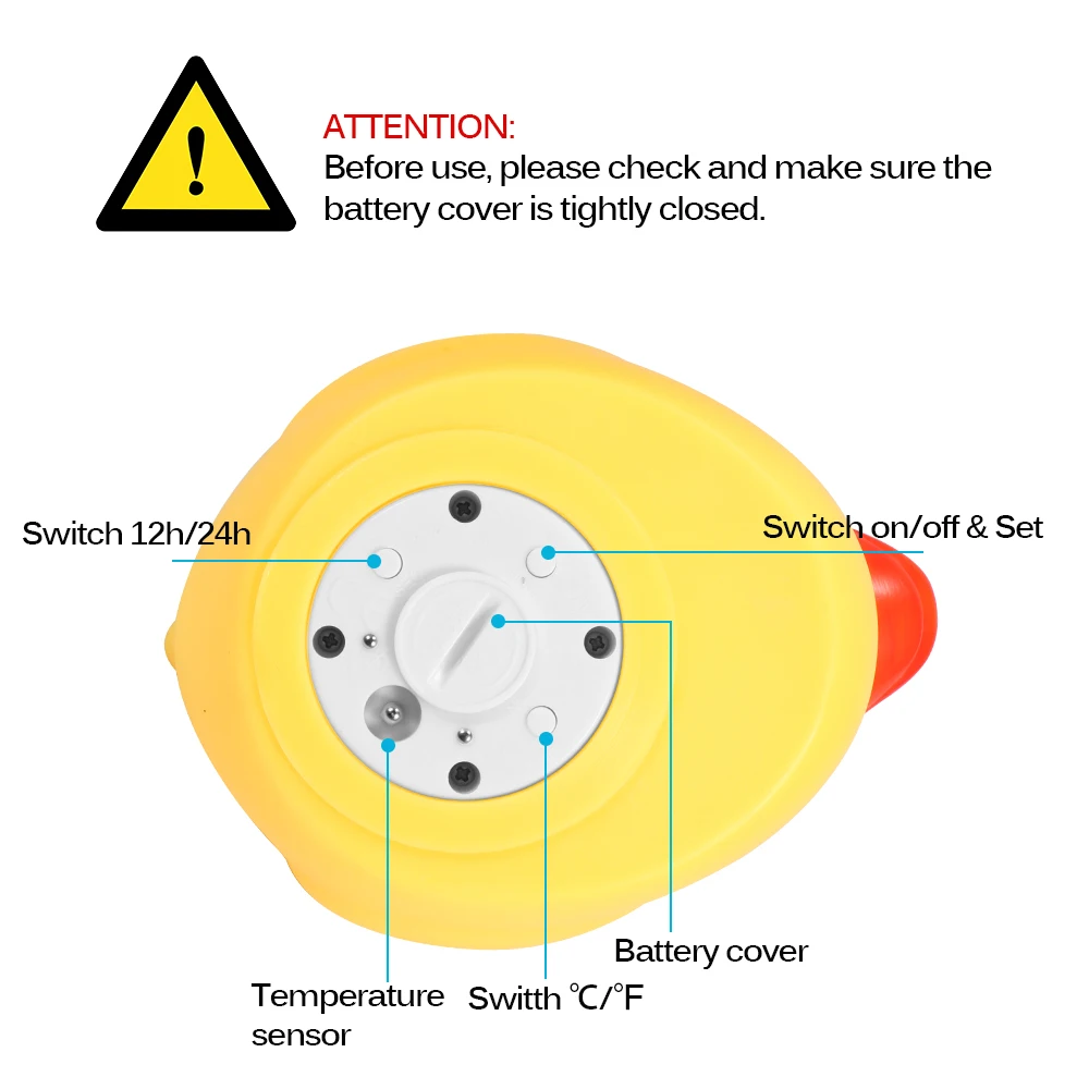 This multifunctional baby bath thermometer can not only use for bath water, but for room use. And it can be a desktop decoration, a lovely gift for your baby.
